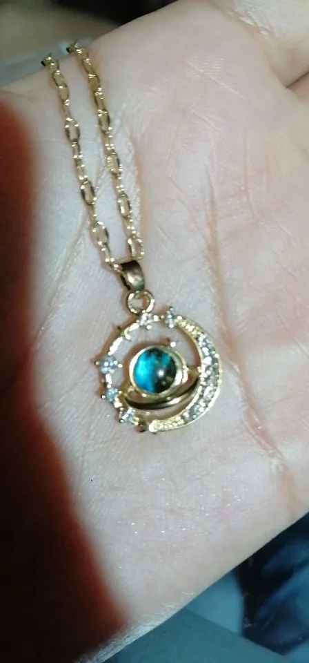 This pendant necklace gives you a clean celestial look. You get a moon and star design with a bright blue center stone that stands out in any light. The gold-tone finish keeps the piece sharp for daily wear or parties.